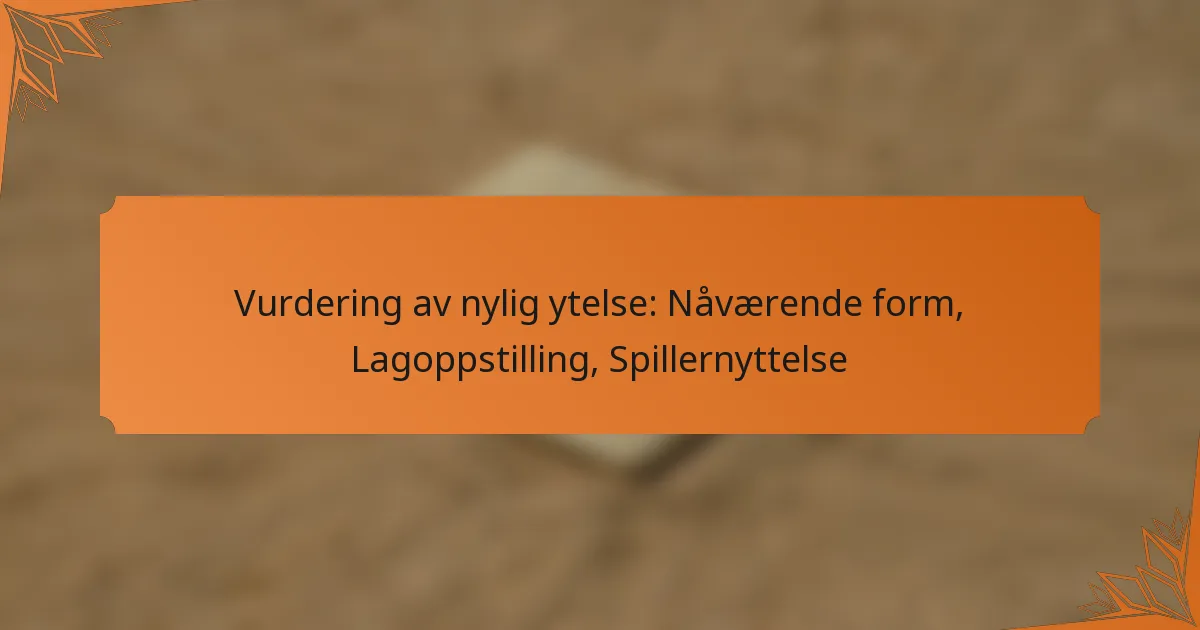 Å evaluere et lags nylige prestasjoner innebærer å analysere deres nåværende form, lagoppstilling og spillerutnyttelse. Å forstå seire-tap-rekorder og spillerstatistikk kaster lys over konkurransemessige styrker og svakheter. I tillegg kan strategisk konstruksjon av lagoppstillinger og effektiv utnyttelse av spillerferdigheter betydelig forbedre lagets samlede prestasjon og tilpasningsevne under kampene.